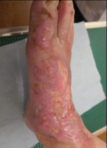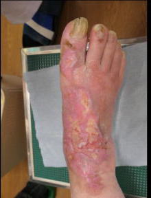 60代女性 熱いお茶を右足にこぼし受傷。同日当院初診。