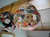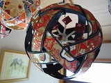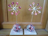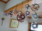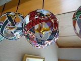 包装紙と広告紙とビーズを使って作った 吊るし飾り |