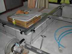 鋼製の大引きと束が昨日線引きされたとおりに並べていかれます。