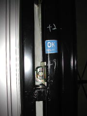 ボルトの側に数字が書かれたシールが貼られていて、その上にOKシールが重ね貼りされている。