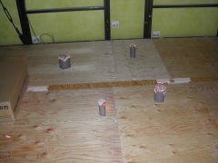 写真右には根太が一部無いところがあります。そのため床パネルの上に乗ると床パネルが沈んでしまいます。質問してみたら、これから施工するのでまだ終わったわけではないという返事が返ってきました。大変失礼しました。