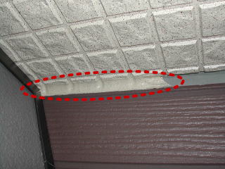 勝手口の庇やバルコニーのオーバーフロー排水口もコーキングされています。外壁と同じジュエルグレイン模様で同じ色のシリコンなので近寄らないと境目がわかりません。