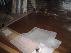 二階のフローリングもほとんどがミディアムオークの少し濃い色です。廊下は養生まで終了しています。