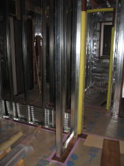 ドア枠もいくつか設置されました。(写真右) このドア枠の上部には、まだ短いスタッドが取付られていません。