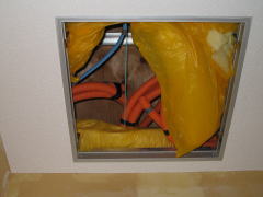 この点検口は、新居と離れの電話やTVの配線を中継する位置とするために、設計S田さんの奨めにより設置されました。
