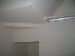 二階の壁紙は、ウォークインクローゼットの棚(写真左)と寝室のアクセント壁紙部分(写真右)と子供部屋の一部以外、全て施工されました。